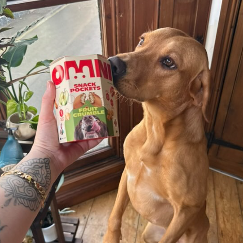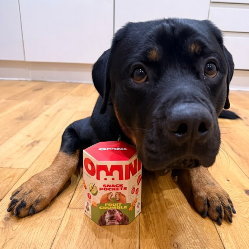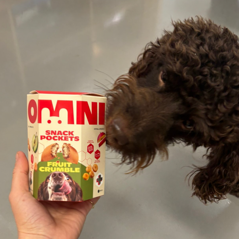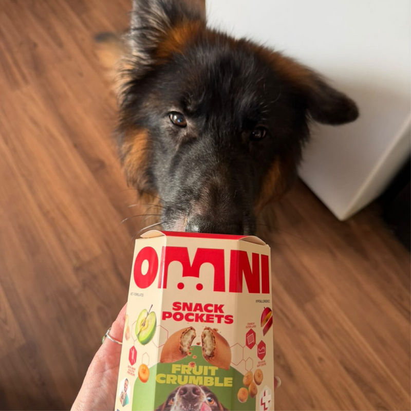 OMNI Snack Pockets deliver big flavour for sensitive dogs. Created by UK vets, these hypoallergenic treats pair a crunchy shell with a smooth, creamy centre for an irresistible dual-texture bite.