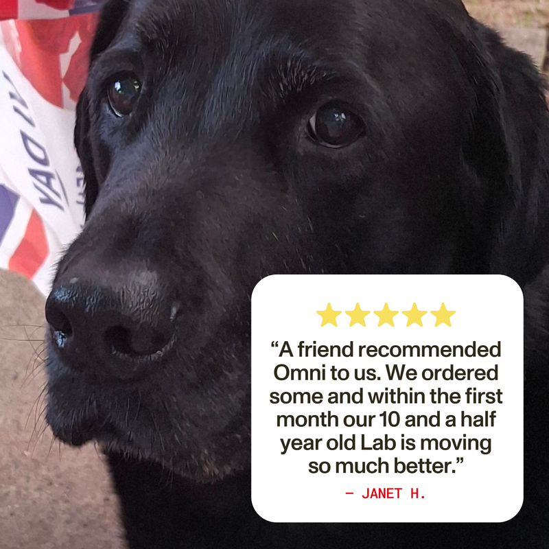 Support your dog’s joints and flexibility with Omni’s vet-formulated Joints & Mobility soft chews. Each tasty bite helps maintain healthy cartilage, promote smooth movement, and keep your dog active and full of life.