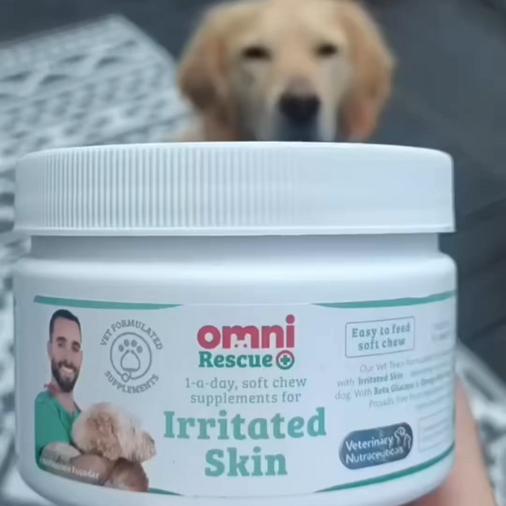 Support your dog’s skin from the inside out with Omni’s vet-formulated Irritated Skin soft chews. Each tasty bite works to give your dog the daily support they need to feel comfortable, look great, and enjoy life without skin worries.