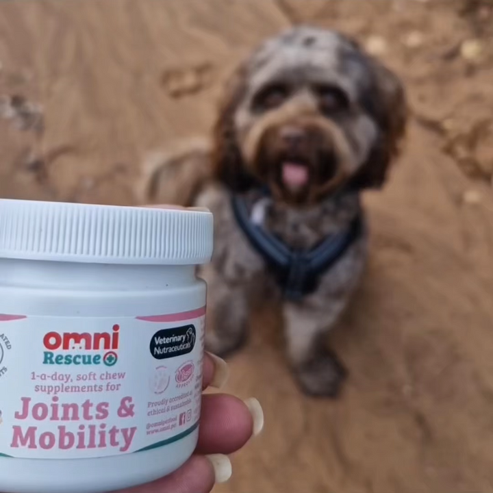 Support your dog’s joints and flexibility with Omni’s vet-formulated Joints & Mobility soft chews. Each tasty bite helps maintain healthy cartilage, promote smooth movement, and keep your dog active and full of life.