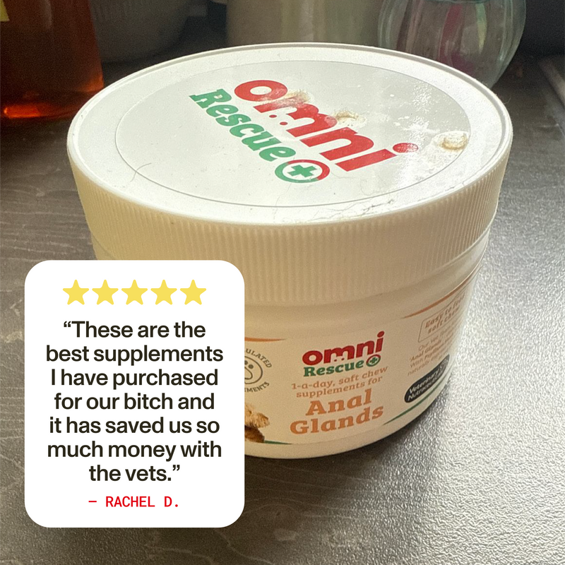 Help keep your dog’s anal glands healthy with Omni’s vet-formulated Anal Gland soft chews. Each chew is designed to support digestive function, promote regular gland expression, and keep your dog comfortable and happy.